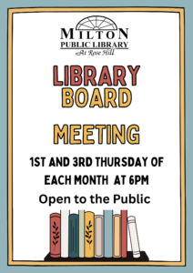Library Board Meeting 6:00 pm – 7:00 pmMarch 5, 2026 The Milton Public Library541 BroadwayMilton , Pennsylvania 17847View LocationMap The Milton Public Library iCal Google Calendar View full calendar